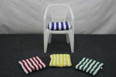Kunststoffstapelstuhl mit Sitzkissen in grün/weiß, blau/weiß, gelb/weiß und rot/weiß erhältlich